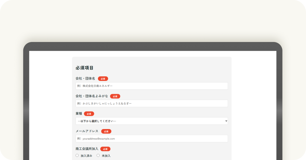 日商が貴社の取り組みページを作成入力いただいたフォームをもとに日商が貴社の取り組みページを作成します。