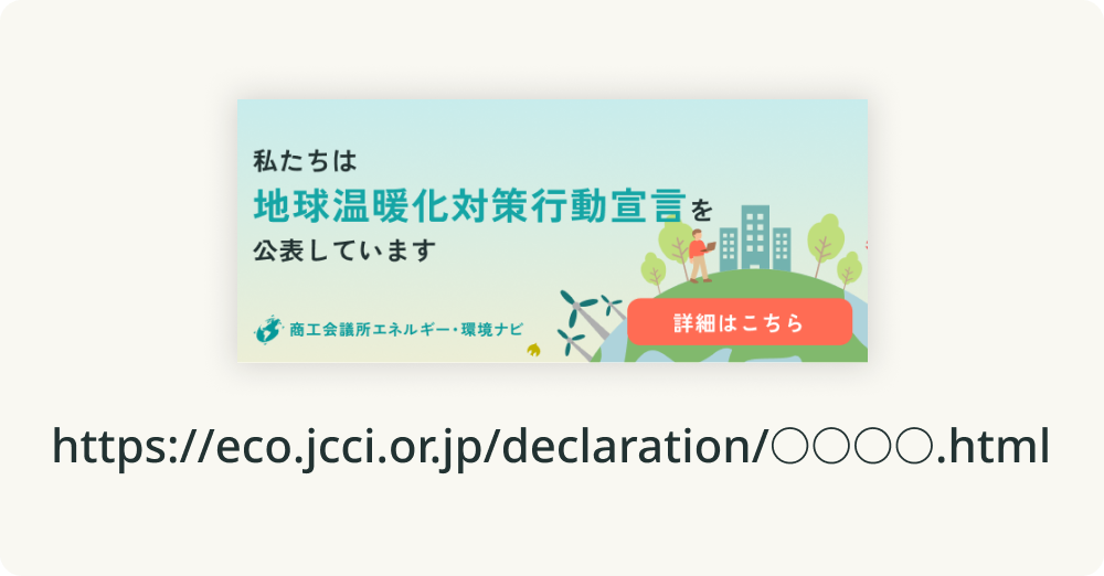 また、宣言文は各事業者専用のURLにより表示することが出来ますので、事業者皆様のホームページからリンクすることによって、宣言文を皆様のホームページから活用することも出来ます。