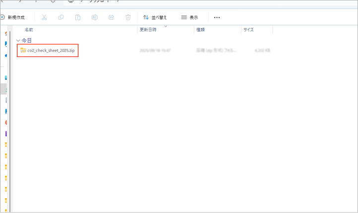 - チェックシートをダウンロードすると、「co2_check_sheet_20○○.zip」というZIPファイルが保存されます。