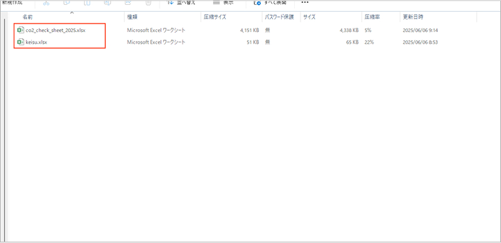 - そのファイルを解凍すると、「co2_check_sheet_20○○」というフォルダが展開されます。