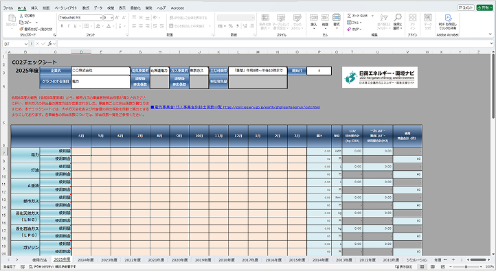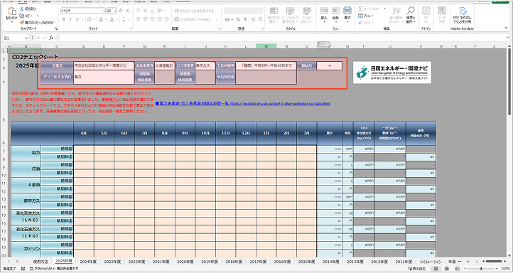 このページではCO2チェックシートのご利用方法をキャプチャ画像付きで解説しています。