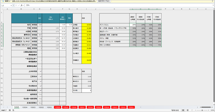 CO2排出量の算出のために使用するファイルです。 以下のシートで構成されています。